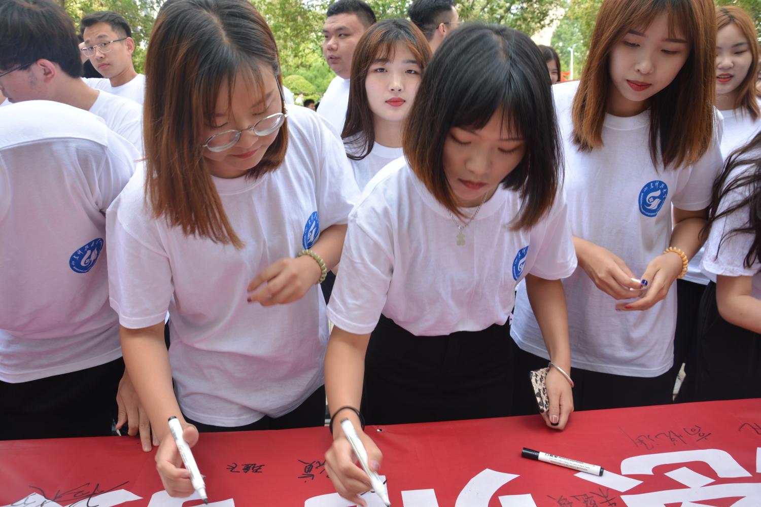 6月16日下午,3044永利集团官网在一号楼泰山石旁举行2021届毕业生签名祝福活动,3044永利集团官网党政班子成员、教师代表、团委老师及全体毕业生参加此次活动。
