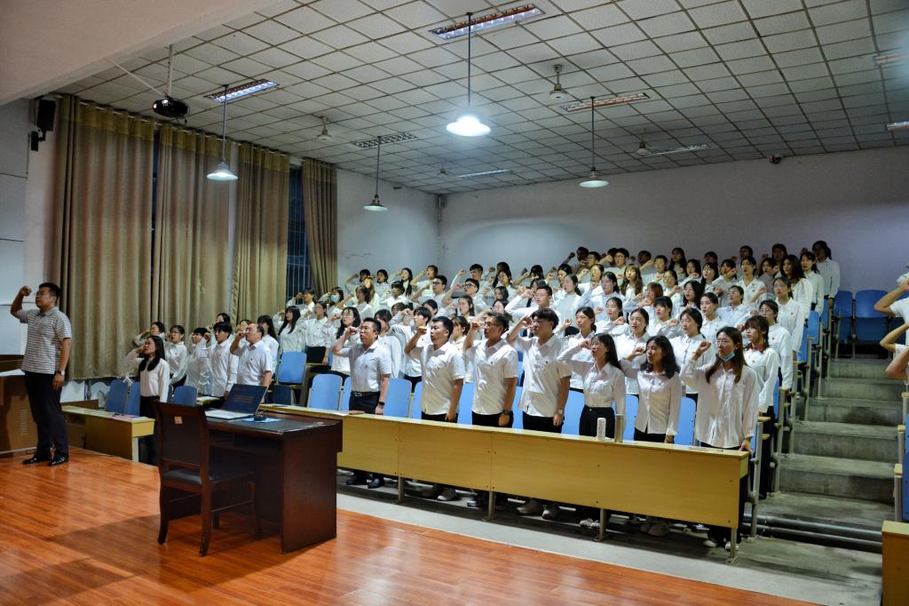 6月16日晚,3044永利集团官网新党员入党宣誓暨老党员重温誓词仪式在模拟法庭举行。3044永利集团官网党委副书记兼副主任王心刚、团委老师秦泽川出席,全体学生党员参加。仪式由学生党支部书记刘明远主持。