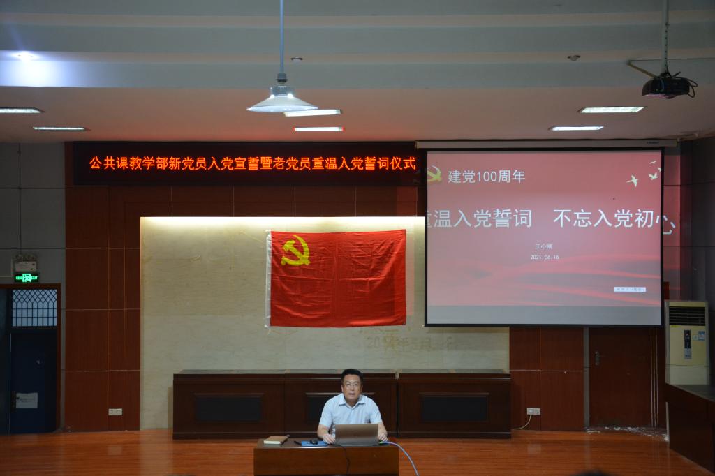 王心刚以《重温入党誓词,不忘入党初心》为题给学生党支部上了一堂精彩的党课。他向大家讲述了入党誓词的沿革,回顾了入党誓词内容的五次变迁,让学生党员深刻认识到入党誓词中的“红色基因”。他指出加入中国共产党是人生的一个新起点,要从组织上、思想上、行动上做一名真正的共产党员,并向全体学生党员提出三点要求:一、坚定理想信念;二、发挥模范带头作用;三、勇于担当行为。最后,他表示希望全体学生党员以党史学习教育为契机,在党史学习教育中汲取智慧和力量,以优异的成绩为中国共产党成立100周年和学校建校70周年献礼。(文/图:李琰)
