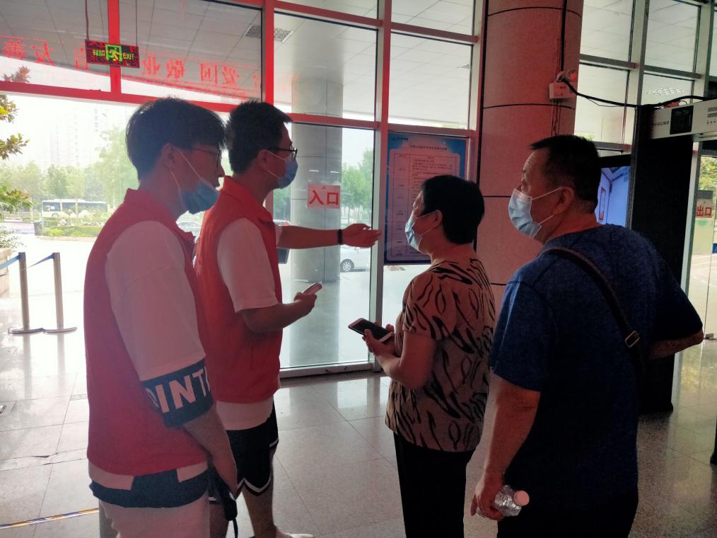 图为志愿者协助进行防疫工作
