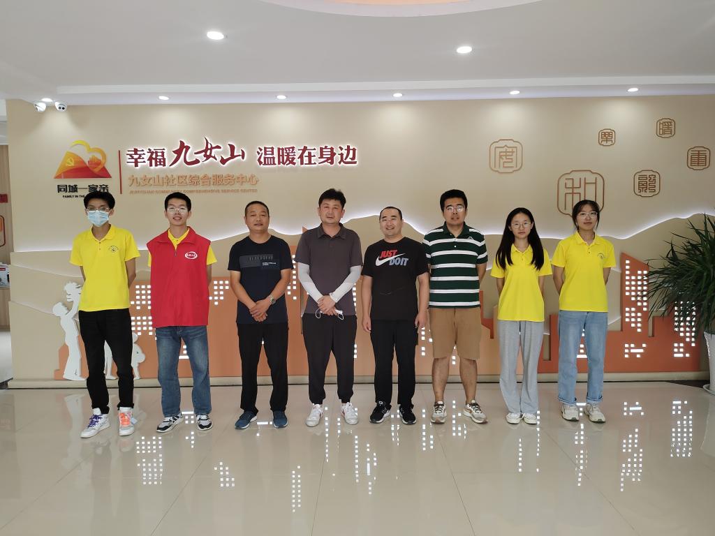 九女山社区主任任洪利首先感谢学校派出优秀的大学生到社区挂职工作。他充分肯定暑期挂职同学在社区工作期间的优异表现,对同学们敢于担当、踏实肯干的工作态度以及在服务基层疫情防控、创建全国文明城市等工作中“特别能吃苦”、“特别能战斗”、“特别能奉献”的精神表示赞扬。会后,刘明远、秦泽川在任洪利主任的引领下,参观了社区党员活动中心、图书阅览室等场所,并与全体人员合影留念。