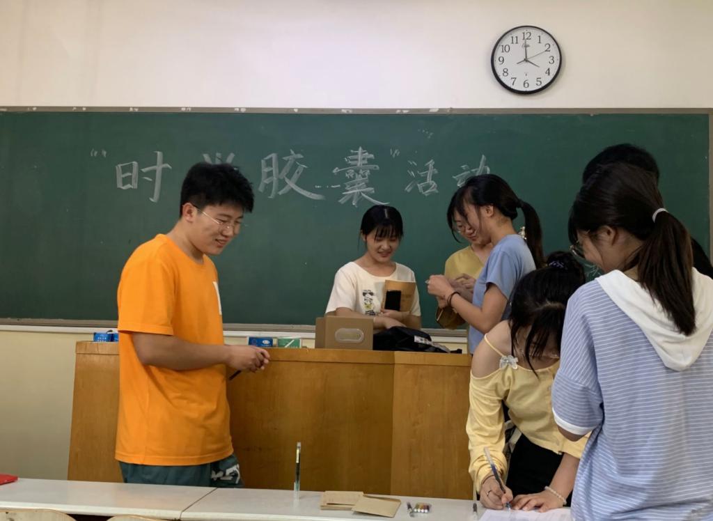 活动过程中,同学们陆续来到教室,将信现场放到信封中,贴上精美的贴纸后封存在预先准备好的纸箱中。许多同学来到现场封存“时光胶囊”,将他们对于大学和人生的想法、感悟记录下来,用“胶囊”实体化,一年后拿出来重新分享,或用来激励未来的自己,或提醒自己不忘初心。现场气氛良好,热闹非凡。同学们纷纷表示:“这封信的内容虽然简短,意义却十分重要。它是我们对未来的郑重宣言,既让我们更加明晰自己未来的规划,也让我们在未来遇到困难时多了一个正视自己、自我调整的印记。”