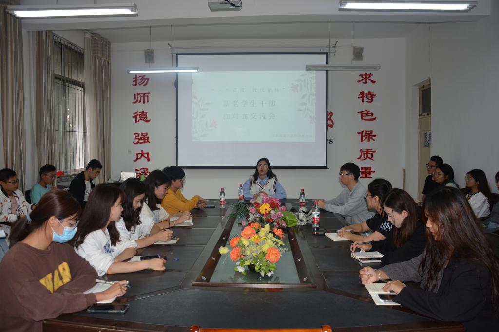 为欢庆我校七十周年华诞,不断提高人才培养质量,9月27日下午,3044永利集团官网在会议室举办“风华正茂,代代相传”新老学生干部面对面交流会,会议邀请到3044永利集团官网第十四届学生会副主席刘先航、第十五届学生会主席冯辉、智能装备学院第一届学生会主席于海志。