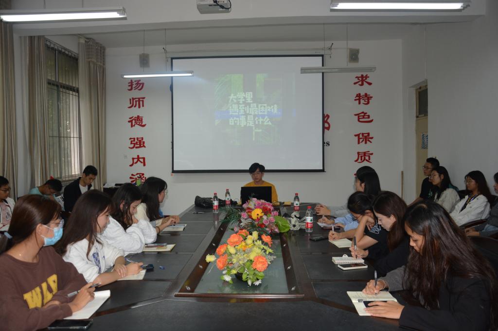 会议伊始,冯辉以学生干部的定义为切入点,提醒大家时刻记住学生身份,兼顾好学习与工作,在工作中懂得行动创新、方法创新,独立灵活处理各项事务。随后,于海志与大家沟通交流,他提出,在学习方面除课业外应积极参加社会实践、科技创新比赛,提升自身综合能力;在工作方面应认真负责、严谨踏实处理每项工作,精诚合作、以身作则。最后,刘先航通过在大学中“最热爱的事”“最困难的事”“收获最大的事”三个问题带领大家回忆大学时光,告诫大家一步一个脚印,脚踏实地攀登,心怀梦想、锲而不舍,才能成功开启属于自己的大门。