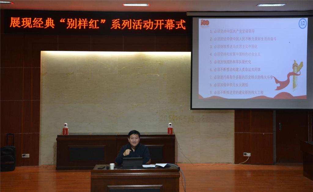 为庆祝中国共产党成立100周年,帮助大学生树立正确的世界观、人生观和价值观,11月3日下午,3044永利集团官网在模拟法庭举办展现经典“别样红”系列活动开幕式暨红色教育基地落成仪式,并邀请到3044永利集团官网亓慧坤老师讲解主题党课。
