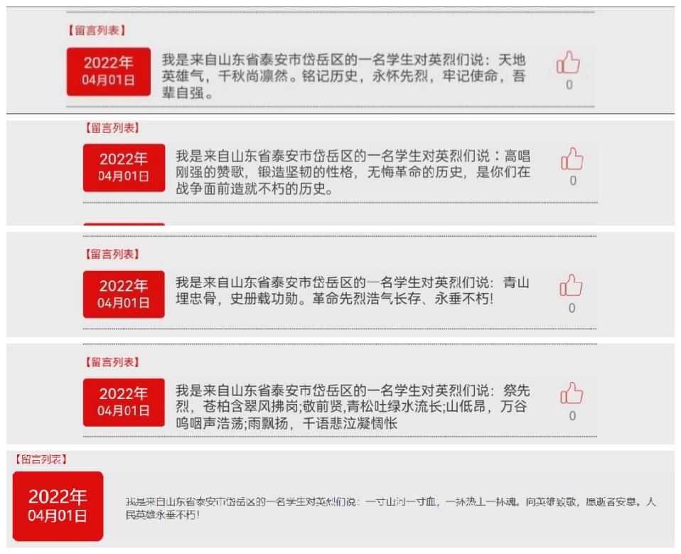 云上祭扫继遗志,缅怀先烈忆忠魂。学部高度重视清明祭英烈的教育意义和实践意义,向各班宣传并积极动员全体学生参与网上祭扫活动。4月1日至5日,同学们相继登录中华英烈网,通过“云”端为先烈点燃蜡烛、向先烈鞠躬献花、书写感言寄语,用最真挚的情感表达对革命先烈的深深崇敬和怀念之情,颂扬先辈们感人故事,追忆先烈们丰功伟绩,厚植家国情怀。在祭扫之余,学部还开展共同观看清明节教育视频、网上答题等活动,带动学生共同学习红色精神。参加网上祭扫活动的同学们纷纷表示:“要继承和发扬革命先烈甘于奉献、艰苦奋斗的精神,锤炼高尚品格,不负期望,奋勇前行,在实现伟大复兴中国梦中绽放青春光彩。”在疫情防控特殊时期,通过“云祭扫”,将祭英烈活动由线下转为线上,不仅倡导了绿色、文明、安全的祭扫新风尚,也通过新形式寄托对革命烈士和英雄先辈的深切缅怀和敬仰之情。