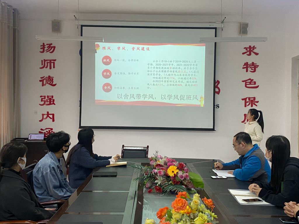 各班级团支部通过精心制作的答辩PPT分别从班级荣誉、班团建设、学风建设、团学活动等多个方面介绍本班情况,利用清晰的数据和丰富多彩的照片充分展现了各班级学风优良、舍风融洽的精神面貌,凸显了各班级的专业特长和取得的优异成绩。答辩结束后,各位评委依次进行点评。最终,经过综合评议,拟推荐汉语言文学2019级1班团支部为五四红旗团支部、秘书学2018级1班为先进班集体。