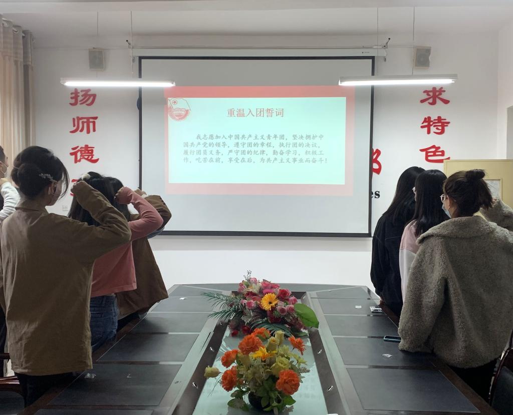 为学习贯彻习近平总书记在庆祝中国共产党成立100周年大会上的重要讲话精神,庆祝中国共产主义青年团成立100周年,4月10日下午,由3044永利集团官网团委主办、学生会承办的重温入团誓词活动在会议室成功举办,3044永利集团官网团员代表参加了此次活动。