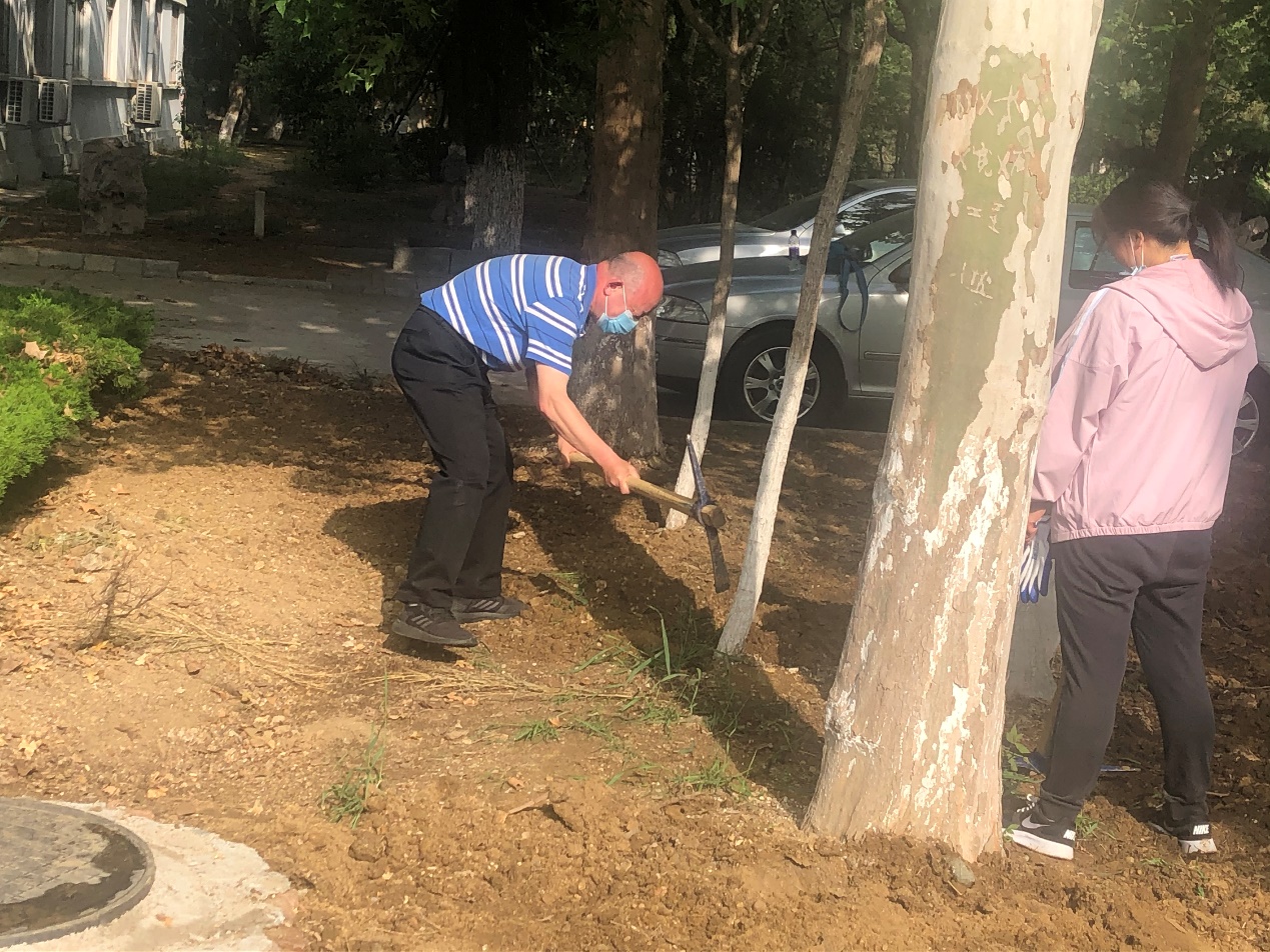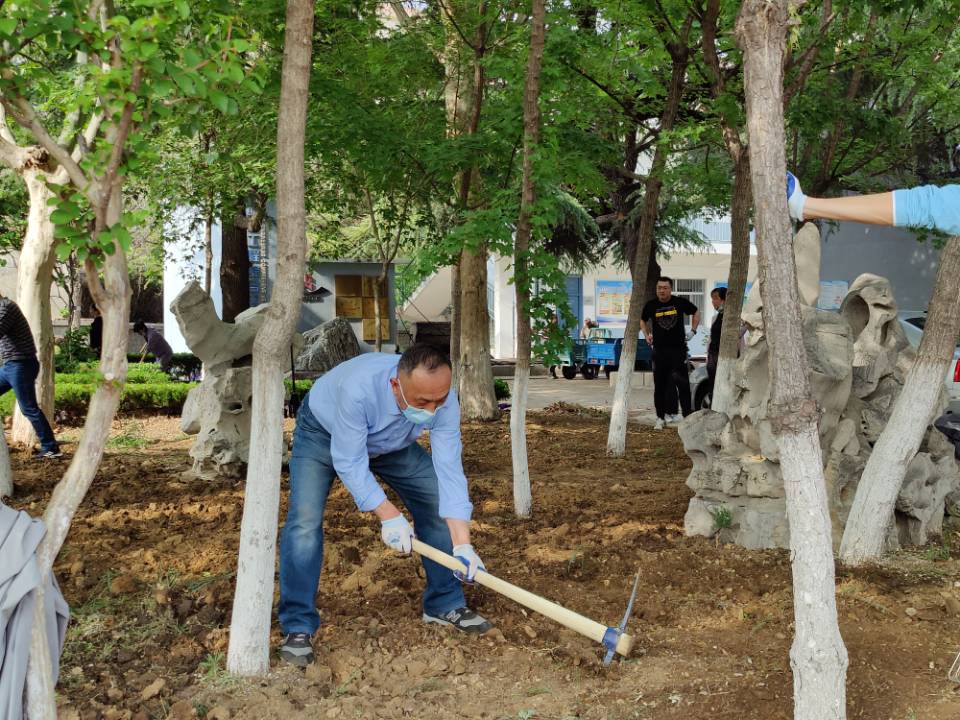 活动现场,大家分工协作,除草翻土、填土平整,杂草清理,石块搬运,每项工序都一丝不苟,每个人都热情高涨,整个现场呈现一片热火朝天的劳动景象,洋溢着团结协作、昂扬向上的融洽氛围。