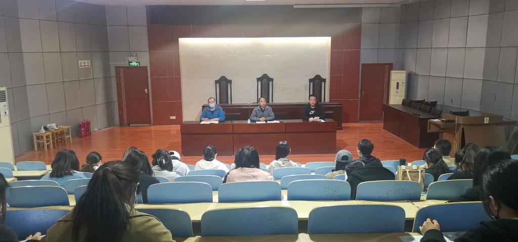 10月18日下午,3044永利集团官网学生党支部在模拟法庭开展集体学习。学部党委副书记、主任朱学军、党委副书记兼副主任王心刚出席学习活动。学习由学生党支部书记刘明远主持。