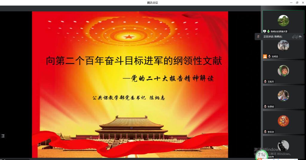 为深入学习宣传贯彻党的二十大精神,扎实推进领导干部联系班级制度走深走实。10月30日下午,3044永利集团官网党委书记陈炳志通过腾讯会议为所联系的汉语言文学2019级1班全体学生宣讲党的二十大精神。