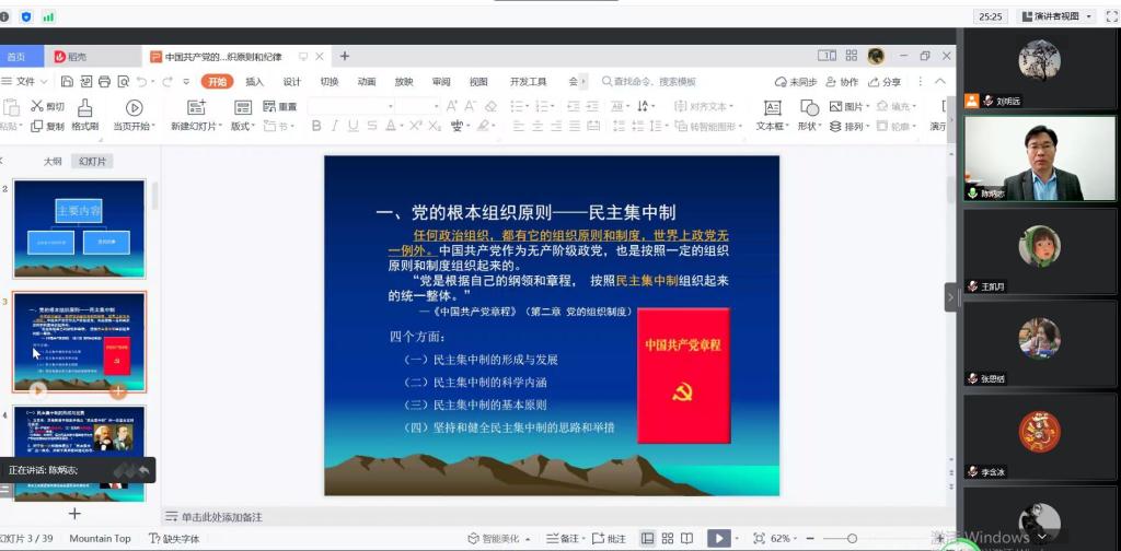 课上,陈炳志以“中国共产党的根本组织原则和纪律”为题,以党的二十大相关内容为切入点,为同学们详细讲解了中国共产党民主集中制的发展历程、科学内涵、基本原则以及坚持和健全民主集中制的思路和举措。结合党史故事,深入解读了党的政治纪律、组织纪律、廉洁纪律、群众纪律、工作纪律和生活纪律,阐述了党员同志应当如何贯彻党的组织原则和怎样遵守党的各项纪律。