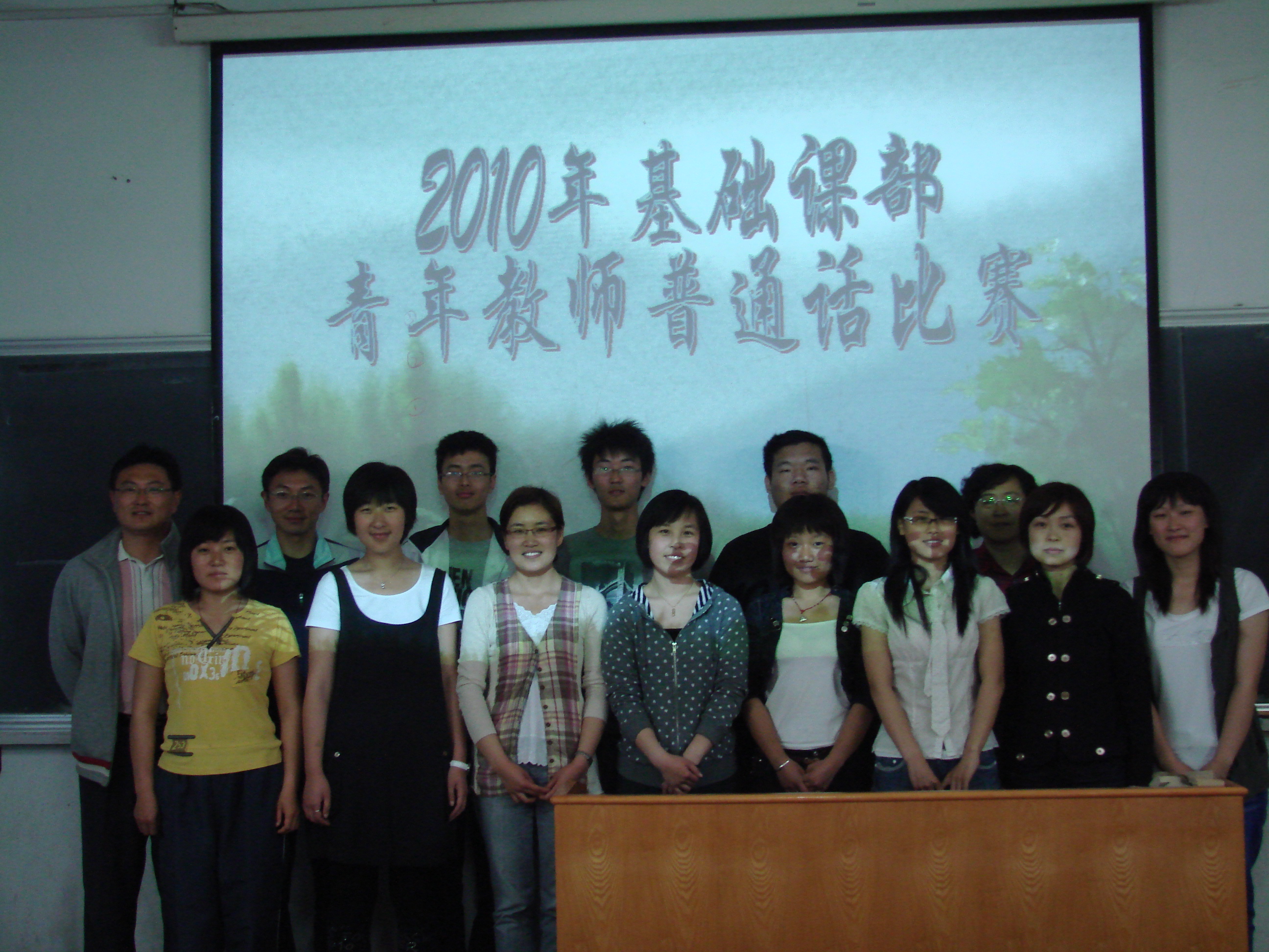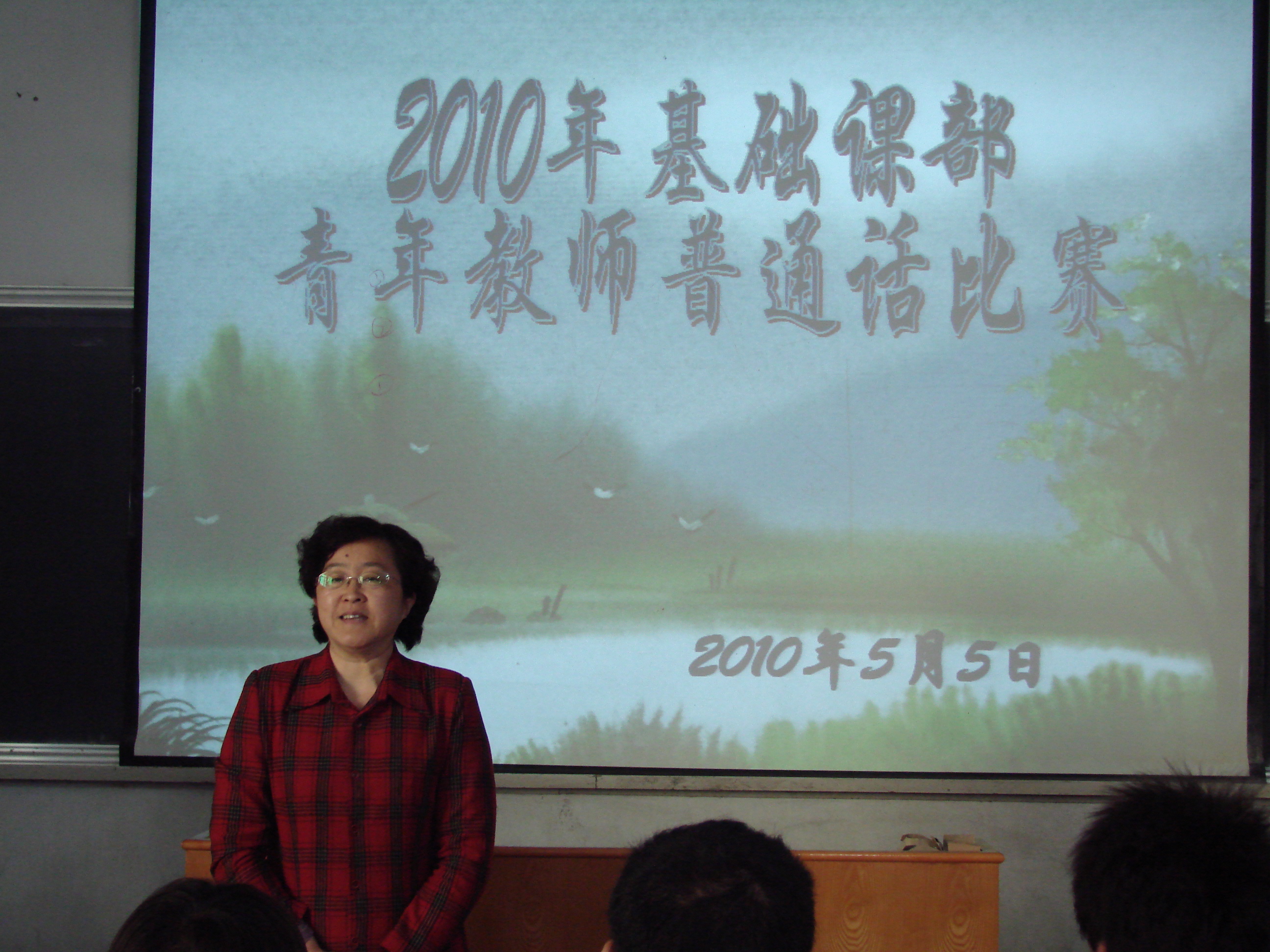 基础课部青年教师普通话比赛于55下午在5 #103教室举行,共有不同专业的10名青年教师参加比赛。评委全部由校区(学院)广播站的7名学生播音员担任,当场评分,当场公布比赛结果。