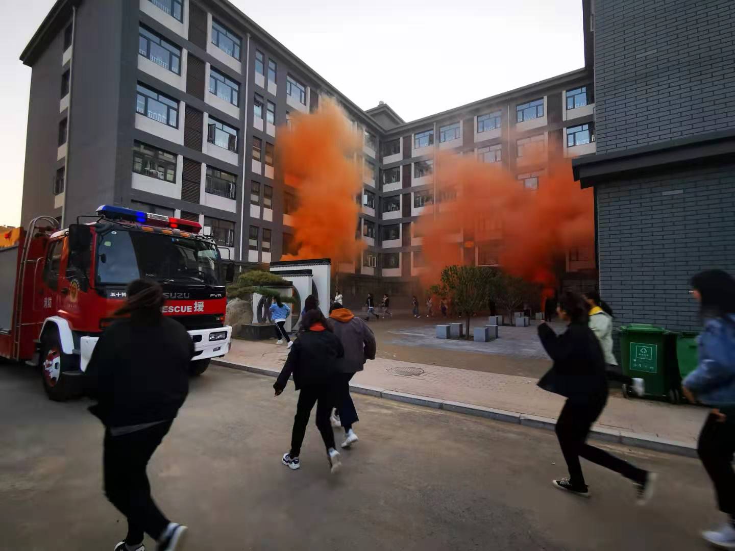 本次演练活动以东校园新建3号学生宿舍为模拟现场,以小篮球场为疏散集合点,校区党委副书记王民现场指挥,泰安市消防支队泰山区消防大队现场指导,整个演练过程组织严密,疏散快速有序,达到了预期效果。