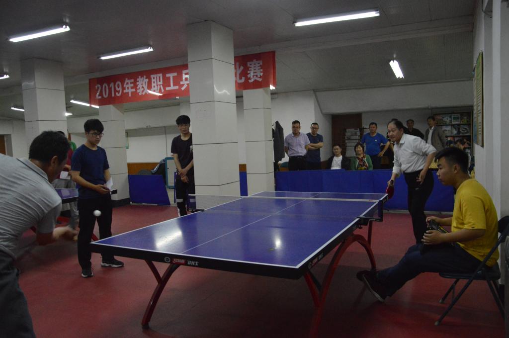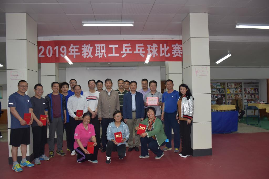 5月14日下午,校区2019年教职工乒乓球比赛圆满结束。经过层层角逐,最终,基础课部男队和文法系女队荣获比赛第一名,机关西男队和机电系女队荣获比赛第二名,文法系、继续教育学院男队和基础课部、机关西女队并列第三名。校区领导刘传玺及有关部门负责人一同观看了比赛并为获奖队颁发荣誉证书。(文:吴照芳图:朱韶华 陈兴明)