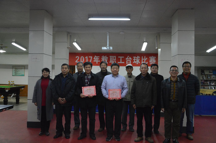经过一个月的角逐,11月28日下午,校区学院2017年教职工台球团体赛圆满落幕。离退休处二队技术精湛、发挥出色、力战群雄、高歌猛进,夺得冠军,离退休处一队荣获亚军。校区领导刘传玺及有关部门负责人观看了比赛并为获奖队颁发荣誉证书。
