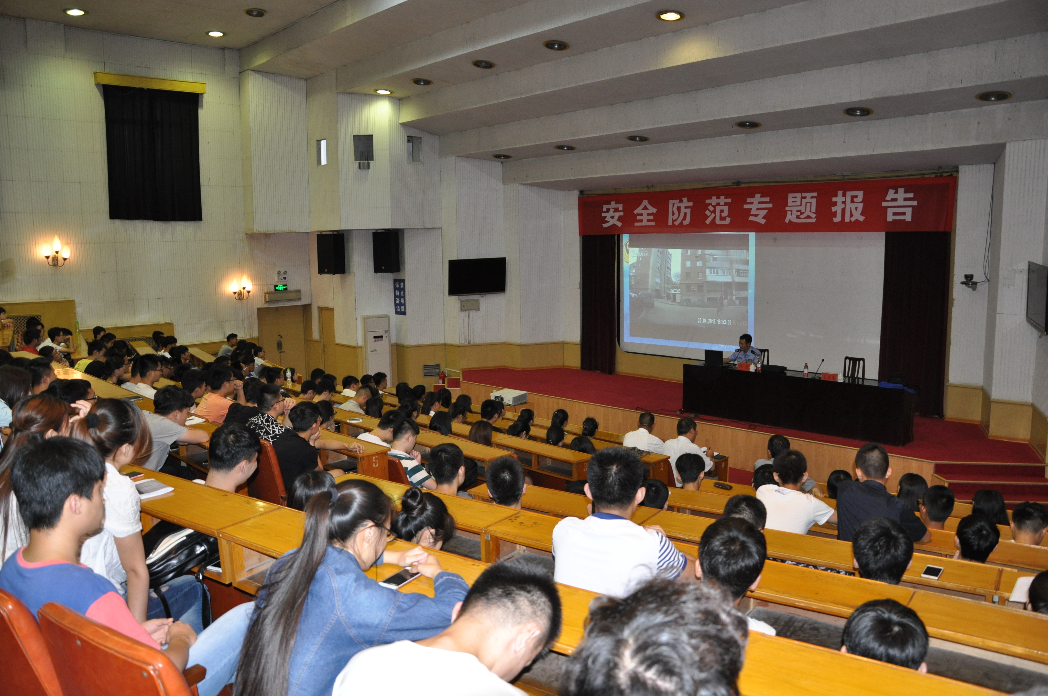 2016年6月23日,为深化“安全生产月”教育活动,由安全保卫部和学生工作处组织,邀请泰安市国保支队综合大队大队长、泰安市政府社会安全事件应急专家许哲,来校区作安全防范专题报告,专题报告在4号楼报告厅举行,近280名师生参加。