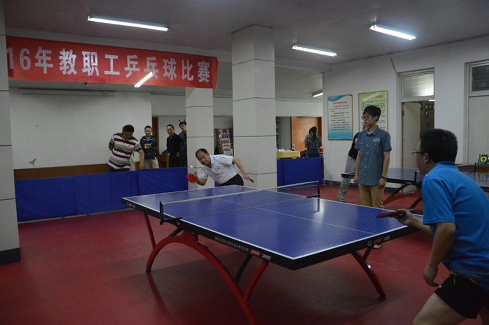 此次比赛吸引了广大乒乓球爱好者积极响应和参与,共有20支代表队、80名教职工参加。比赛为男女混合团体赛,分两个阶段进行,第一阶段为预赛,在东、西校园同时进行,单循环三局两胜制,各小组前两名晋级,第二阶段为决赛,在东校活动室进行,交叉淘汰五局三胜制,最终决出冠亚军。各代表队精心组织筹划,参赛队员热情高涨,直拍、横拍、旋球、扣球、弧线球等精湛的技术淋漓体现,让观众们应接不暇,整个比赛井然有序,高潮不断,精彩纷呈。通过比赛,加深了教职工友谊,切磋了球技,增强了系部、单位之间的交流,达到活动预期的目的和效果。(文:牛晓琳 图 :张雷 牛晓琳 谢云浩)