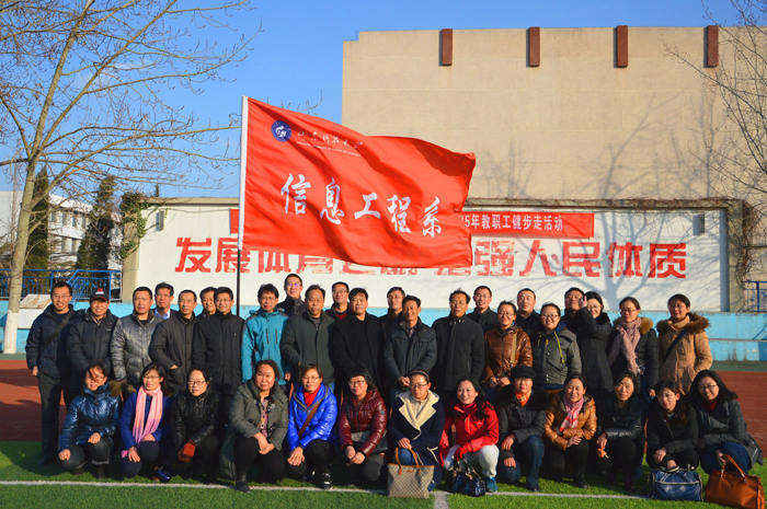 此次活动分别在东、西两校园同时进行,东校园从校内出发,沿红门路上行,到达万仙楼;西校园自办公楼出发,沿校内外环路、进操场东门绕行一周。活动当天下午,雾霾散尽、阳光普照、空气清新,教职工个个精神抖擞、意气风发,迈着矫健的步伐快步向前,行进途中,大家置身于整洁优雅的校园环境、欣赏着上山沿途自然及人文景观,同时,还利用这难得的机会,互相嘘寒问暖、沟通交流、谈笑风生,大家在享受健身快乐的过程中,也加深了了解、愉悦了身心、陶冶了情操,增进了会员之间的感情交流。最后,职工们兴高采烈地在健身活动终点处照像留念,之后,又安全返回。(文:牛晓琳 图:张雷 任卫兵)