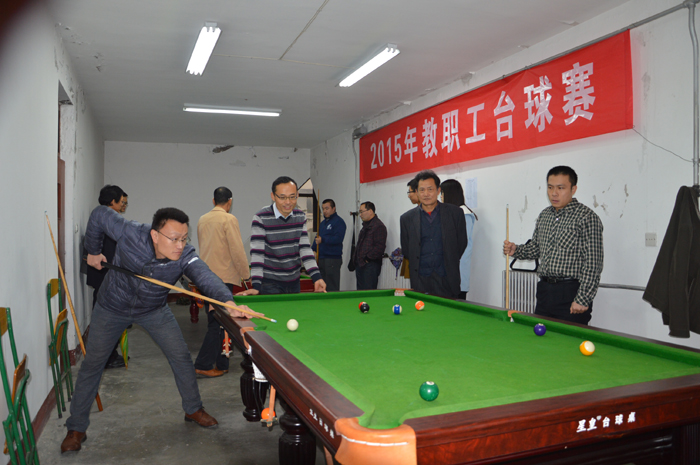 11月24日下午,校区、学院2015年教职工台球团体赛圆满结束,经过12天50余场的激烈角逐,离退休处分工会1队荣获冠军,文法系分工会1队荣获亚军,机关(东)分工会2队、经管系分工会1队获优秀组织奖。校区、学院党委常务副书记刘传玺及有关部门负责人观看比赛并为冠亚军和优秀组织奖代表队颁奖。