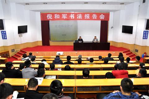 为推进校园文化建设,浓厚校园艺术氛围,3月17日下午,校区图书馆与泰安校区团委联合邀请中国书法界“兰亭奖”一等奖获得者,泰山书法院副院长,青年书法家、篆刻家倪和军来泰安校区为师生作了一场题为“走近书法艺术”的精彩讲座。校区团委书记王靖磊主持了讲座。会前,副校长兼泰安校区党委书记、管委会主任,泰山科技学院党委书记、院长王少鹏,与校区管委会副主任、学院副院长王以功会见了倪和军先生。