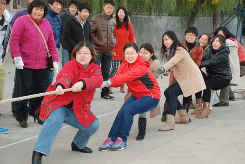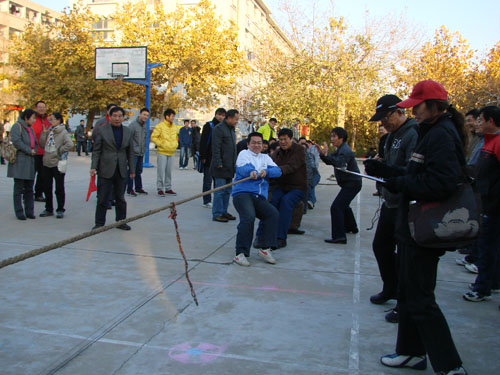 1113下午,泰安校区(泰山科技学院)2012年教职工拔河比赛在东、西两校园同时举行,共有20个代表队300余名队员参加。