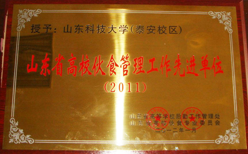 山东省教育厅高校后勤处和山东省高校伙食专业委员会联合组织的2011年度高校伙食管理工作评比活动中,校区(学院)荣获了“2011年度山东省高校伙食管理工作先进单位”称号,后勤公司饮食服务中心副主任姚训峰、周传峰两位同志被评为“2011年度山东省高校伙食管理工作先进个人”。