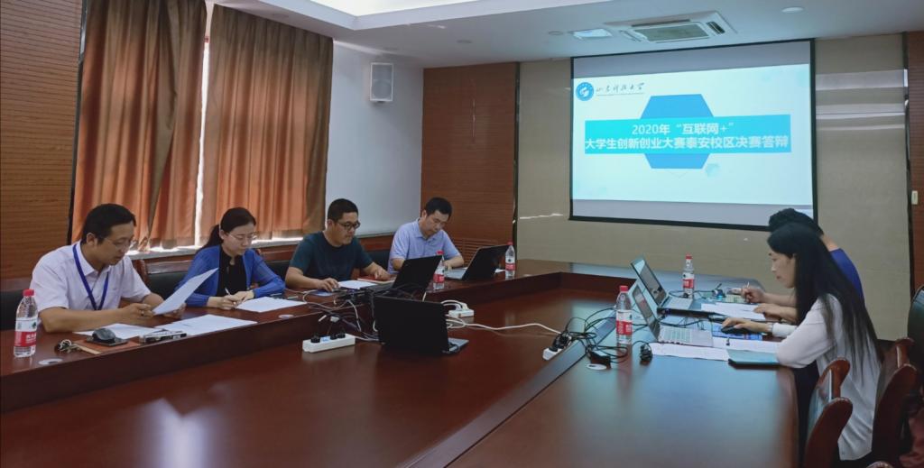 7月23日,2020年“互联网+”大学生创新创业大赛泰安校区决赛答辩在东校园1-601会议室成功举办,校区团委书记侯静娴、答辩评委在现场出席答辩活动,参赛选手通过网络视频进行答辩。