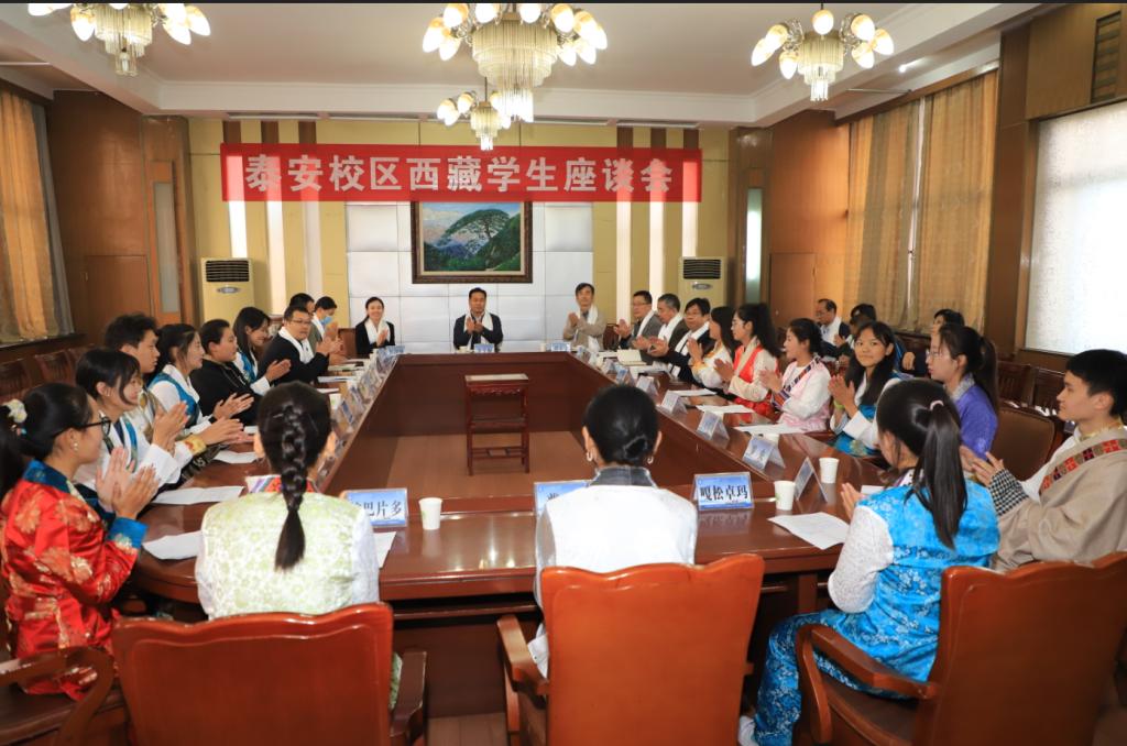 10月20日,泰安校区在西校园201会议室召开西藏学生座谈会,校区管委副主任方亨福出席座谈会并讲话。校区管委委员、学团部主任戴东宝,校区党政办公室、学团工作部、教学科研部、后勤管理部负责人,各学院党委副书记、团委书记,2020级全体西藏学生参加座谈会。座谈会由校区团委书记侯静娴主持。