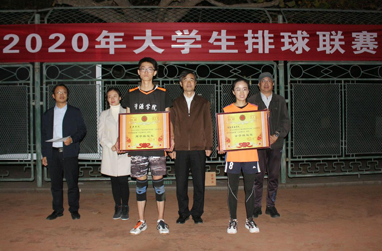 为弘扬体育精神,提高竞技运动水平,健康学生体魄,增进各学院(部)之间交流,校区于10月19日-26日举办了2020年大学生排球联赛,并于26日在东校园排球场举办了颁奖仪式,学团工作部主任戴东宝、校区团委书记侯静娴、体育系系主任常征出席了颁奖仪式。