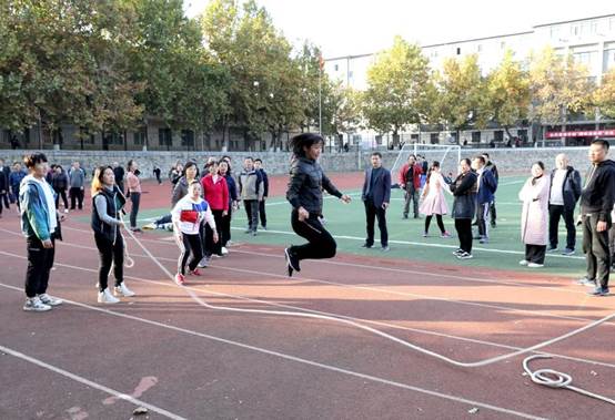 全体工会会员被随机分成红队、蓝队两个组,以团队组织活动,趣味运动会设计项目有健身操、跳大绳、滚铁环、“保卫地球”、撕名牌等。健身操阶段,全体会员在两队队长的带领下,跟随教练口令和欢快的音乐节奏做起各种花样的动作,动作舒展协调又不失优雅美丽,似操似舞,既有健身操的刚劲,又有舞蹈的柔美。跳大绳时老师们依次跳过长绳,既考验灵活性又考验了团队的协调配合。保卫地球环节,每队派出10名队员,两人一组面对面把手并拢,保护一个“地球”,从起点出发,球不能掉到地上。如果球掉在地上立即捡起,从原点从新开始此次比赛为接力赛,用时最少的队并且不犯规的获胜。滚铁环则吸引了很多年长老师们,他们弯腰、接地、瞄准、略略用力,就势一放,那只圆圆的铁环,就被一根带弯钩的铁棍勾着,推着,驱赶着,一溜烟地朝前而去了。活动的压轴大戏是“撕名牌”,每队5人在规定的区域内尽情奔跑,欢快互“撕”,撕掉一张名牌,传出一片欢笑;对队友的保护,对敌人的“伏击”,时而如孩童般欢脱,时而又警惕万分,不管是被秒撕还是顽强存活,在愉悦的氛围中,老师们的身心都得到了十足的放松。每项活动红、蓝两队互有胜负,而积分早已被老师们抛在了脑后。最终,运动会在欢声笑语中结束。