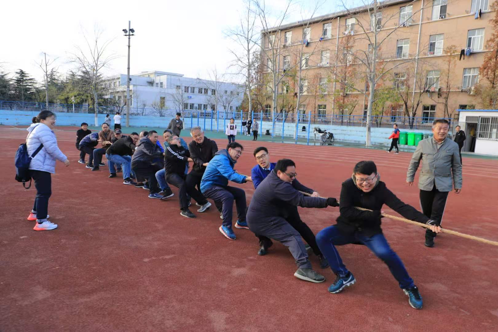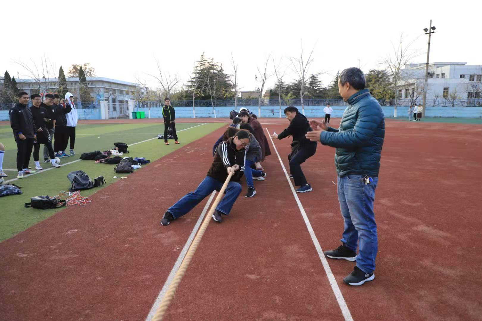 为丰富教职工文化体育生活,11月19日下午,校区2020年教职工拔河比赛在东西校园同时举行。