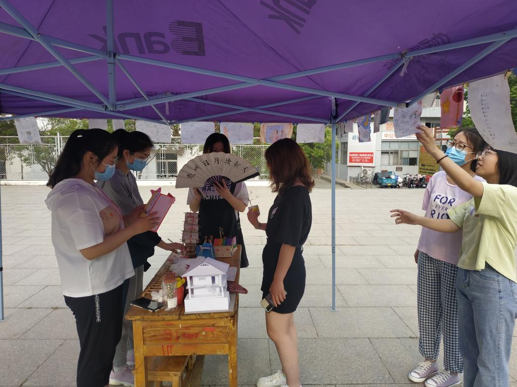 5月30日, 由校区学团工作部主办、心理健康协会承办的手工艺品、三行情诗大赛和“画解心情”心理健康主题绘画设计大赛优秀作品在西校园礼堂前展出。