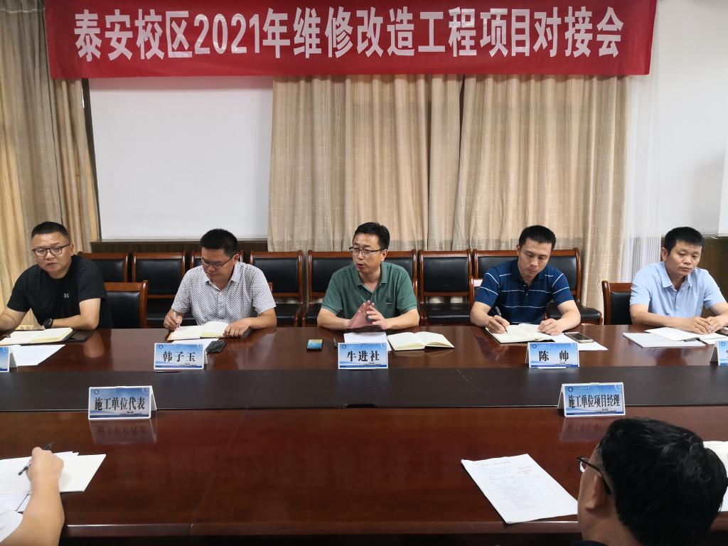7月1日,学生公寓暑期维修改造工程项目对接会在1#办公楼201会议室举行。会议由资产管理办公室主任韩子玉主持,学团工作部、资产管理办公室、监理单位、施工单位等相关领导及项目负责人参加了会议。