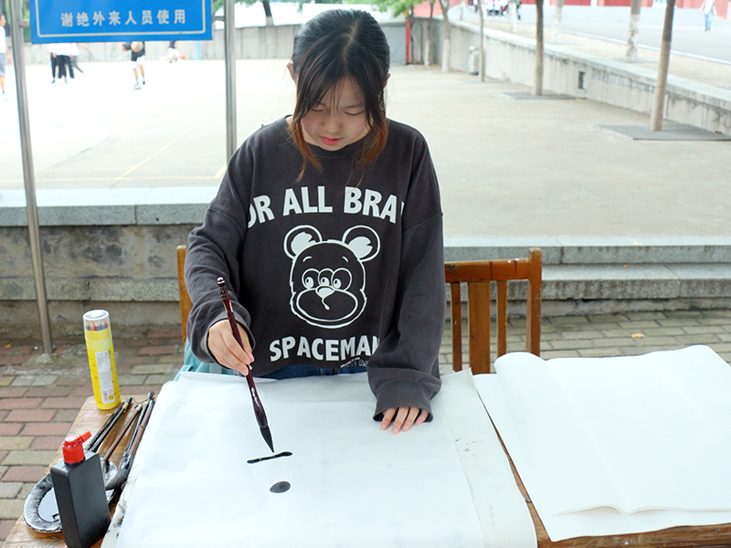 9月24日,由校区团委举办的校庆书画展于东校林荫道进行,本次活动邀请到了翰墨轩书画社的成员,现场为校庆书写贺词,以书法、绘画的形式表达对建校70周年的祝贺和对学校未来发展的美好祝愿。