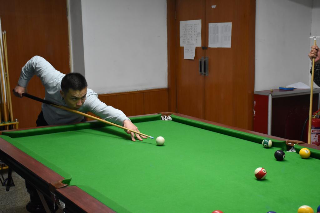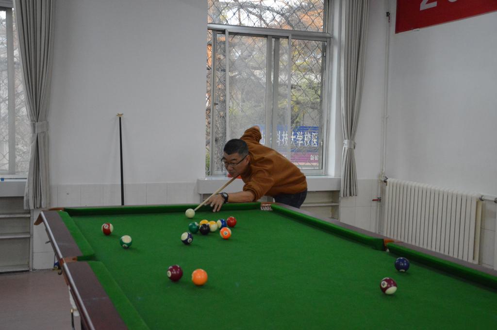 本次比赛,共有来自7个分工会的90余名教职工参加。比赛采用淘汰制团体赛的形式,分为预赛和决赛两个阶段,预赛在东、西两校园同时展开,决赛在东校园教职工活动室举行。比赛中,握杆、架桥、出杆、击球每一个动作都体现了参赛选手的优良品质和非凡智慧,选手的出色发挥赢得了在场观众的阵阵喝彩。