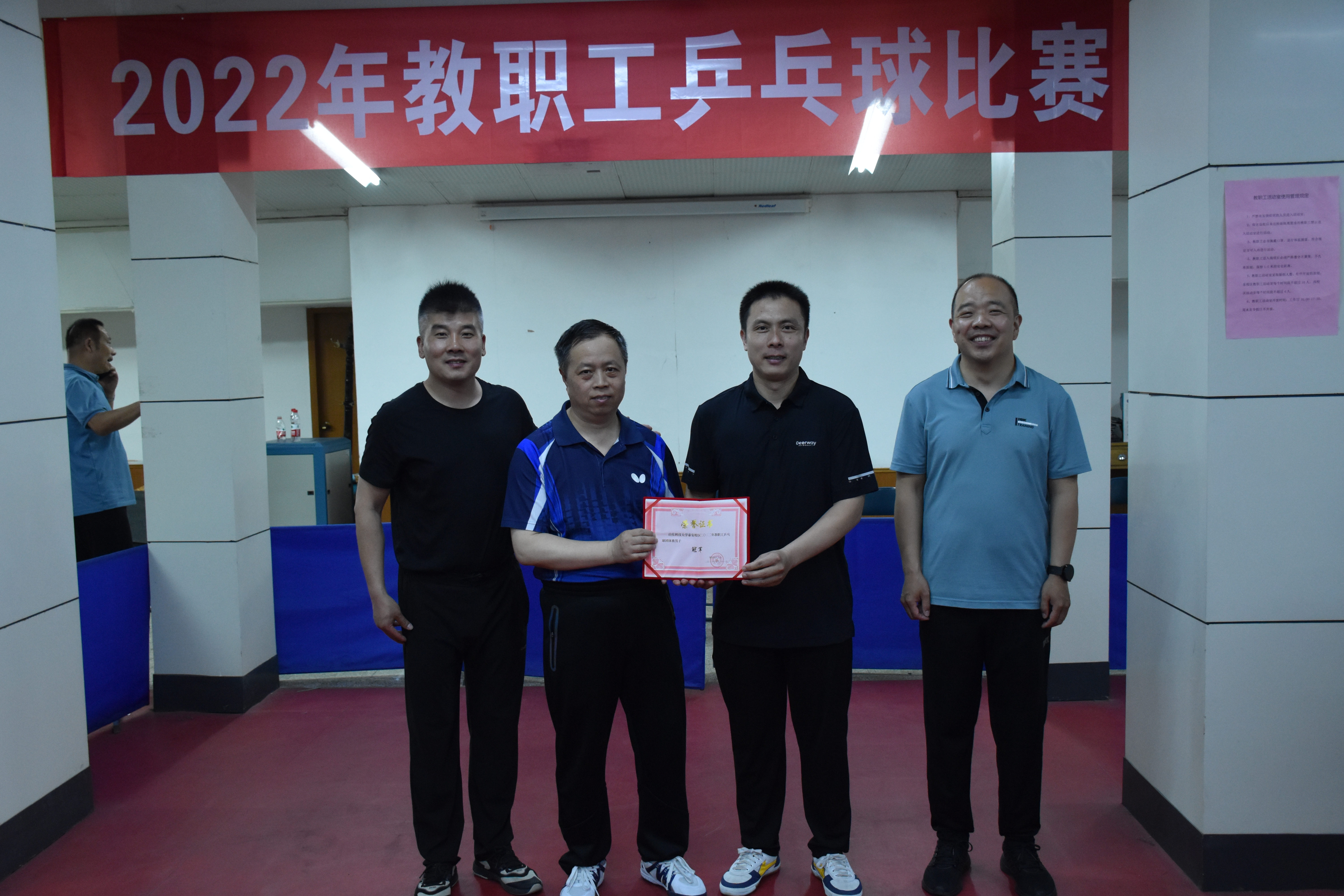 2022年5月23日,泰安校区工会组织的教职工乒乓球团体赛,经过多日激烈角逐,于5月31日迎来激动人心的决赛时刻,赛场上运动员们热情饱满、精神抖擞、左右开弓、奋力拼搏,比赛现场气氛紧张而热烈,场面精彩纷呈,赢得了现场观众们的阵阵喝彩和高度好评。最终机关(东)获得男子组冠军,智能学院获得女子组冠军,机关(西)获得男子组亚军,3044永利集团官网获得女子组亚军,3044永利集团官网和智能装备学院获得男子组第三名,资源学院和机关(西)获得女子组第三名。(文:朱韶华 图:陈兴明 朱韶华)