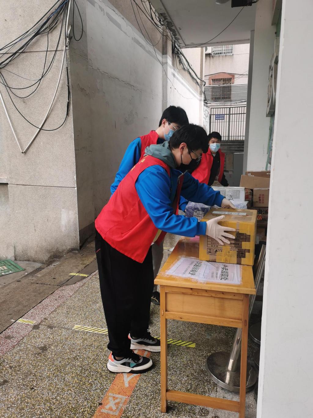 为保障封闭期间学生的学习和生活,大东院区域临时党支部第一时间成立党员志愿服务队,由150余名党员和入党积极分子组成,开展“封闭不封爱”的党员志愿服务活动。学生党员主动承担区域内的快递、外卖消杀发放、活动中心管理、核酸检测点引导等志愿服务工作。活动中,值班老师现场督导时刻提醒志愿者注意自身防护,提醒志愿者执勤时注意保暖,师生们如家人般爱护关心着彼此,让这一方小天地充满浓浓温情。