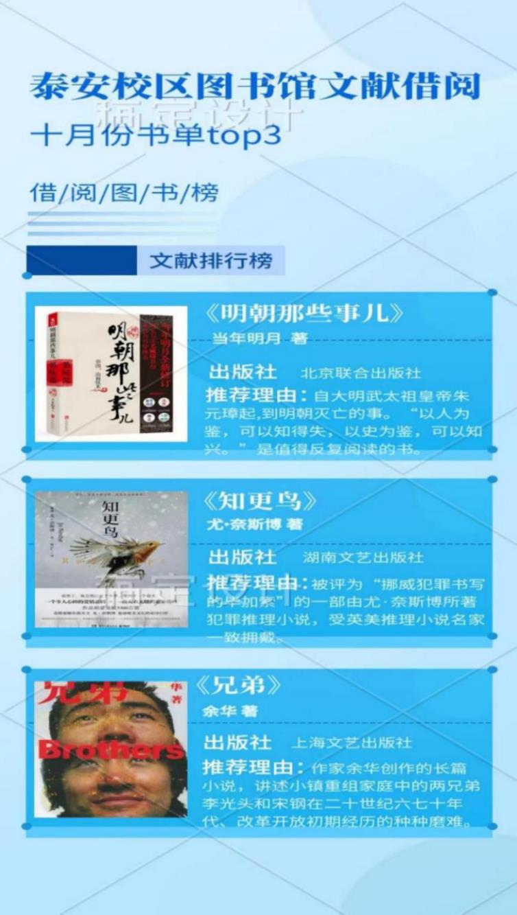 2022年十月份图书文献借阅排行榜TOP3