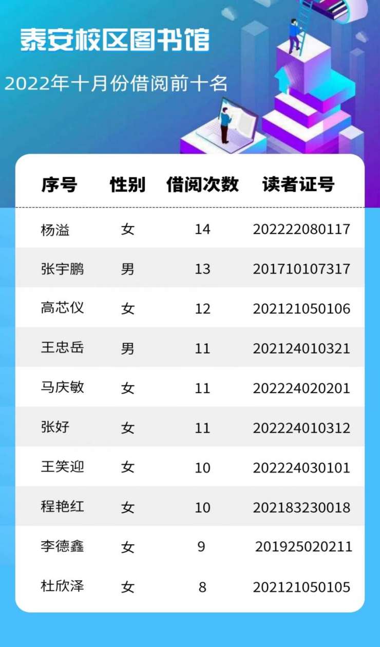 2022年十月份读者借阅前十名名单