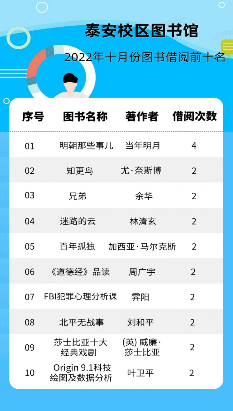 2022年十月份图书借阅前十名名单