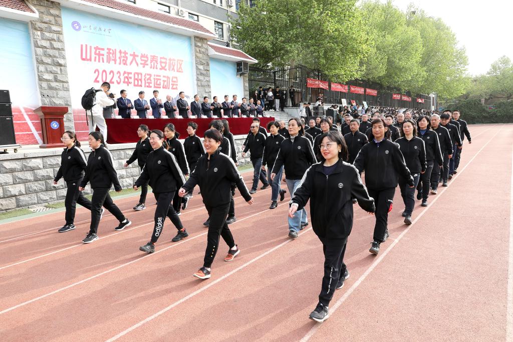 在开幕式上,由四十名教职工组成的教职工方队迈着矫健的步伐昂扬走过主席台,引起现场观众的阵阵掌声。
