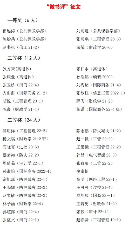 泰安校区图书馆第十届“微书评”系列活动获奖名单