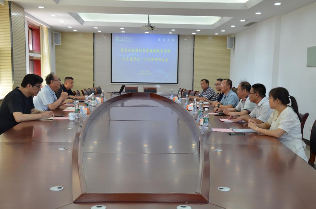 6月8日,潍坊学院继续教育学院院长王长春一行4人来院调研交流,继续教育学院院长王靖磊、副院长狄卫东及部分科室负责人参加调研会。