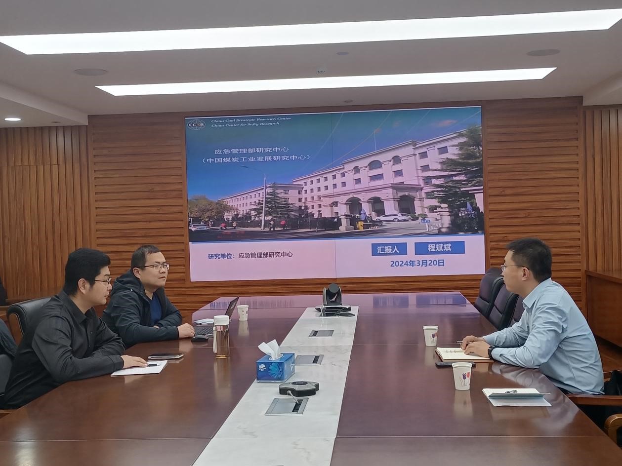 为扎实推进学校高端培训基地建设和高质量发展,继续教育学院院长马鹤、院长助理孙运表一行赴应急管理部研究中心(中国煤炭工业发展研究中心)开展合作交流活动,应急管理部研究中心发展研究五处副处长王国栋、主任程斌斌等出席并参加座谈交流会。