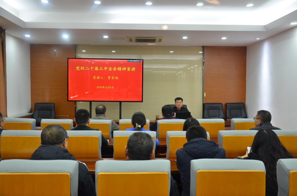 12月6日,继续教育学院党总支书记贾长响为学院全体党员、领导干部宣讲党的二十届三中全会精神。