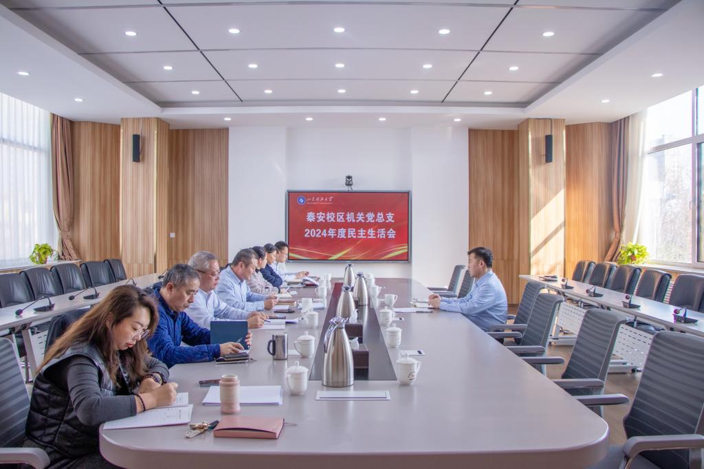2月25日下午,泰安校区机关党总支召开2024年度党员领导干部民主生活会。校党委委员、泰安校区党委常务副书记吴正龙到会指导督导。民主生活会由机关党总支书记殷永贵主持,党总支班子成员参加会议。