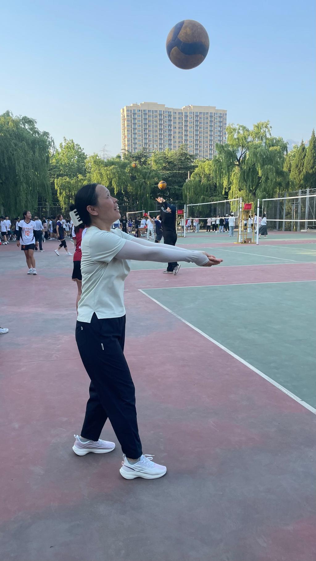 5月20日,泰安校区教职工排球协会在西校园排球场举行了一场垫排球比赛。