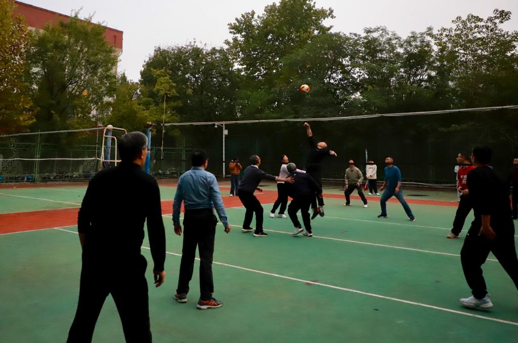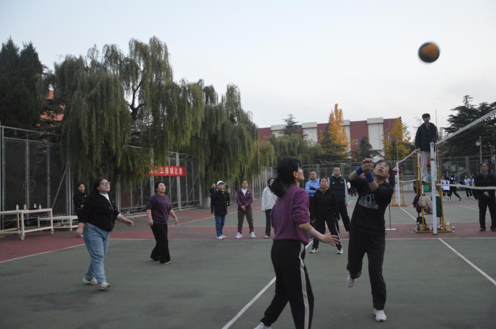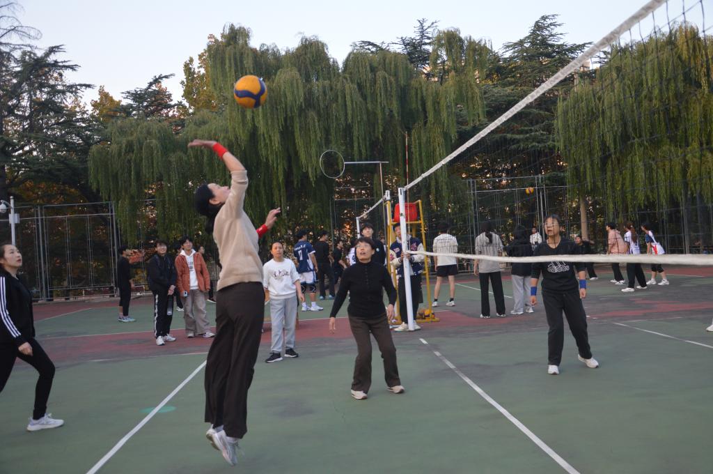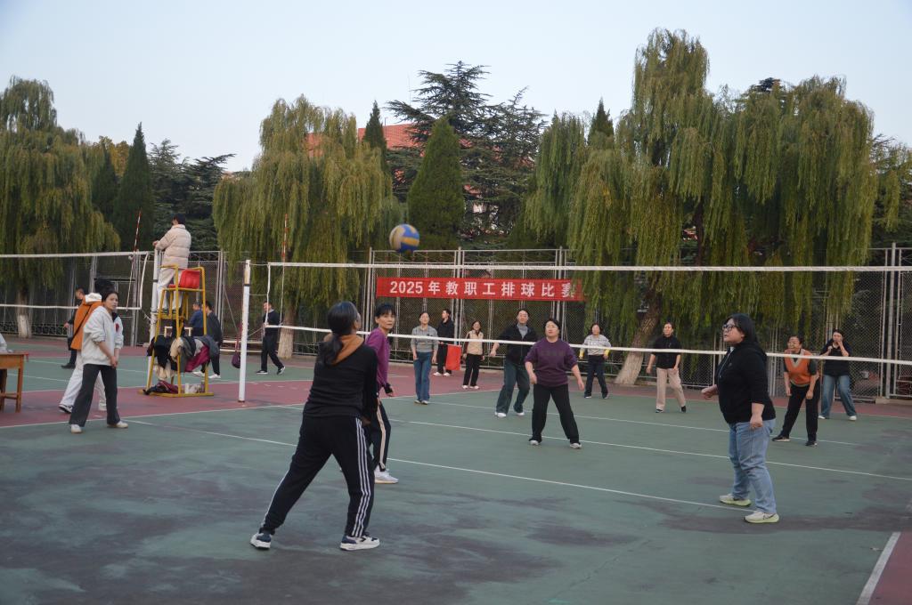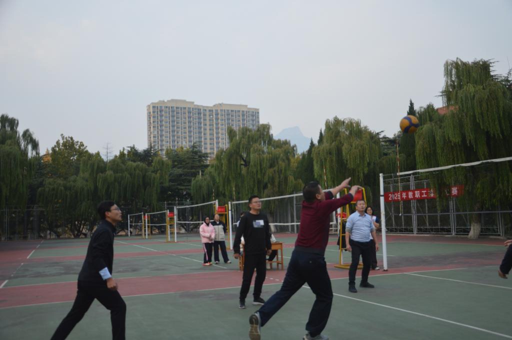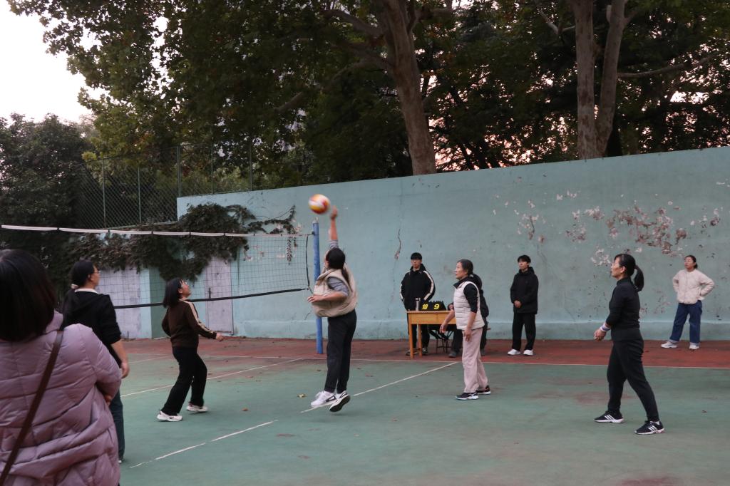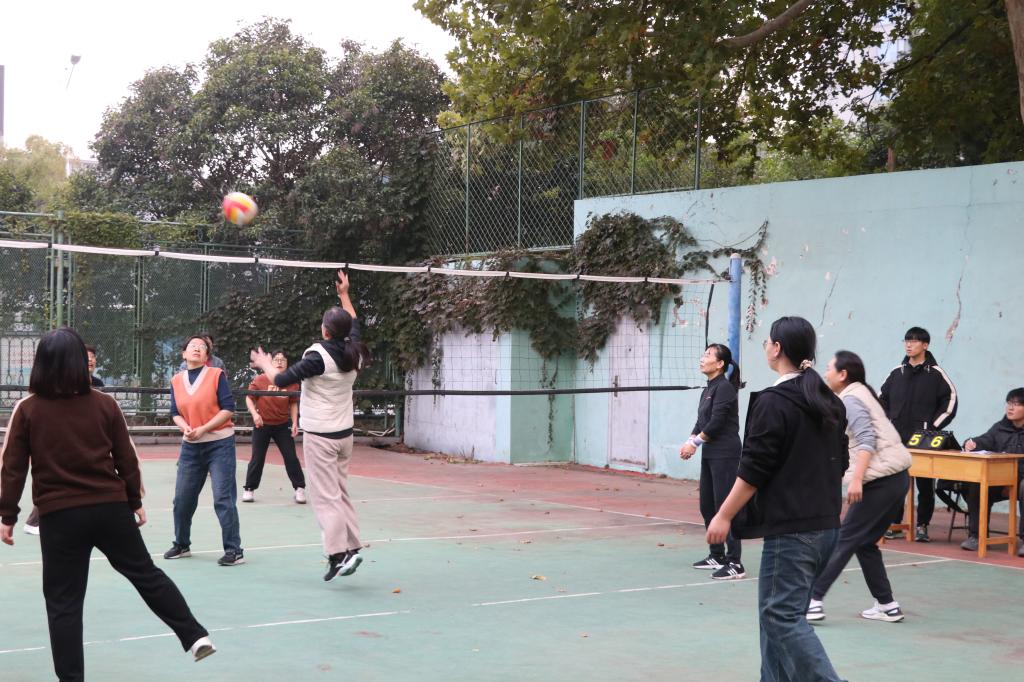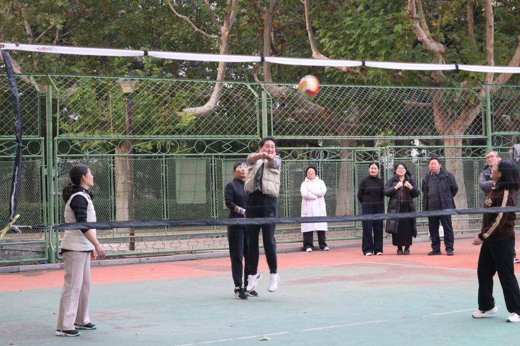 比赛现场气氛轻松而热烈。队员们全情投入,身手矫健。精准的发球、默契的拦网、奋不顾身的扑救,每一次精彩的得分都引来场边师生的阵阵喝彩,欢声笑语不断。教师们展现出活力四射的一面,场边啦啦队的加油声也此起彼伏,充分展现了各部门的凝聚力,将比赛不断推向高潮。