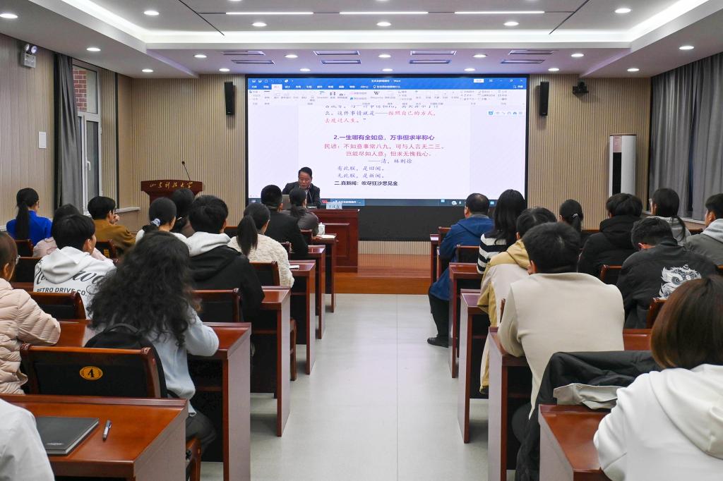 11月7日,校区2025年新闻宣传培训班邀请泰安日报社编委王汉友作题为《中国文章学与新闻写作》的专题讲座。党政办公室相关负责人和工作人员,各学院分管宣传工作辅导员,校区学生会、新闻中心学生记者参加培训。